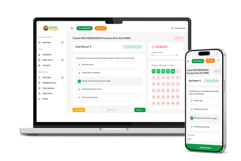 Latihan soal terarah, pembahasan lengkap, dan sistem tryout real membantu kamu selangkah lebih dekat menjadi ASN melalui jalur kedinasan.
